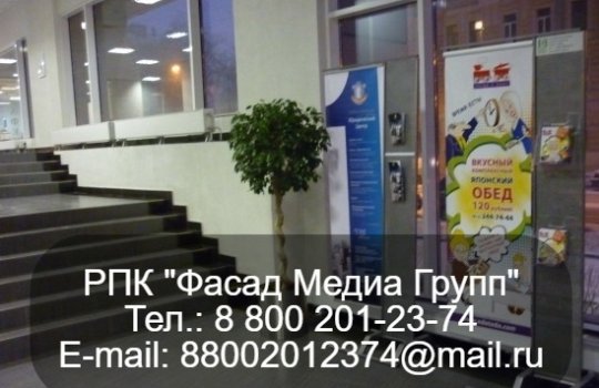 РПК «Фасад Медиа Групп» напечатала плакат и разместила рекламу на пилларсах, установленных в торговых центрах. Размещение рекламы позволяет значительно повысить узнаваемость бренда, а также сообщить потенциальным клиентам и покупателям информацию о товаре или услуге