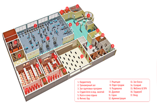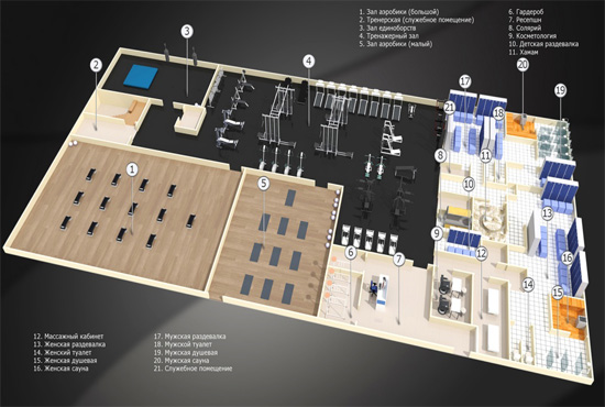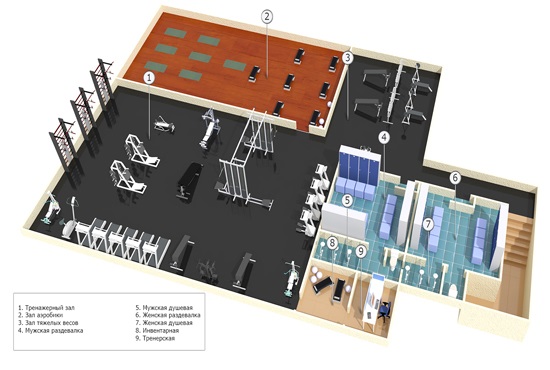 Дизайн фитнес-центра. Пример 1