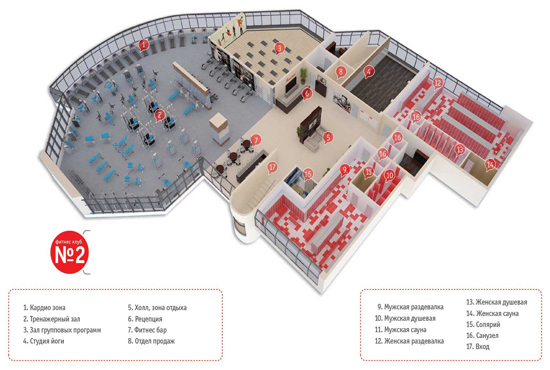 Во втором случае дизайнерские фитнес-центры могут использоваться как элемент имиджа, позволяющий сформировать положительный образ вашему бизнесу. Следовательно, дизайнерские фитнес-центры выступают в качестве способа продвижения бренда компании. Корпоративное оформление фитнес-центра позволяет выделить ваше заведение среди аналогичных и продемонстрировать устойчивое развитие вашего бизнеса.