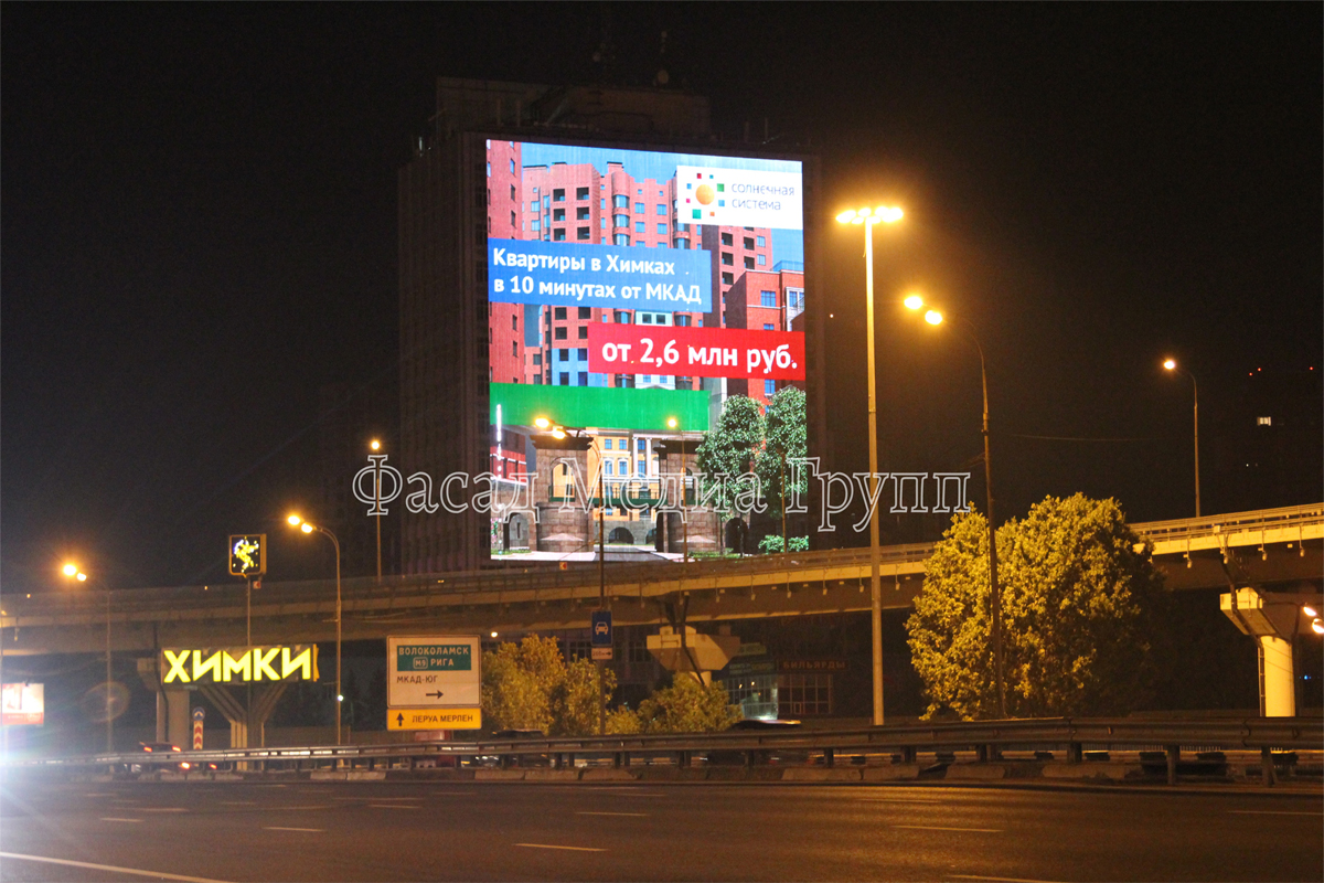 Реклама на медиафасаде ш. Ленинградское на фото выше