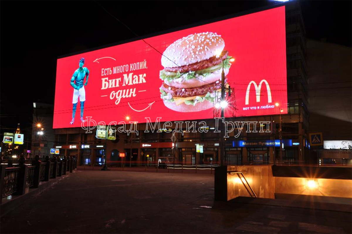 Как можно видеть, наша компания является рекламным агентством полного цикла, что позволяет нам размещать рекламу на медиафасадах «под ключ».