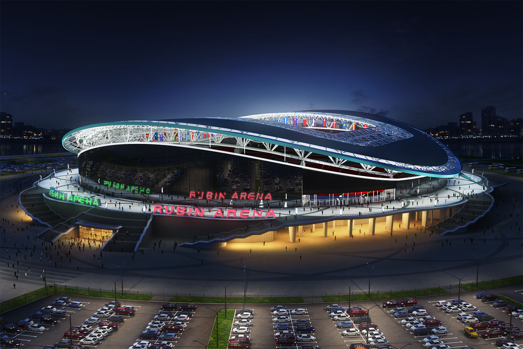 2) Стадион «Халифа» (Катар). Медиафасад был установлен на стадионе в 2006 году. Длина экрана составляет 165 метра. Высота – 39 метров. Площадь – около 4500 квадратных метров. Форма – полумесяц.