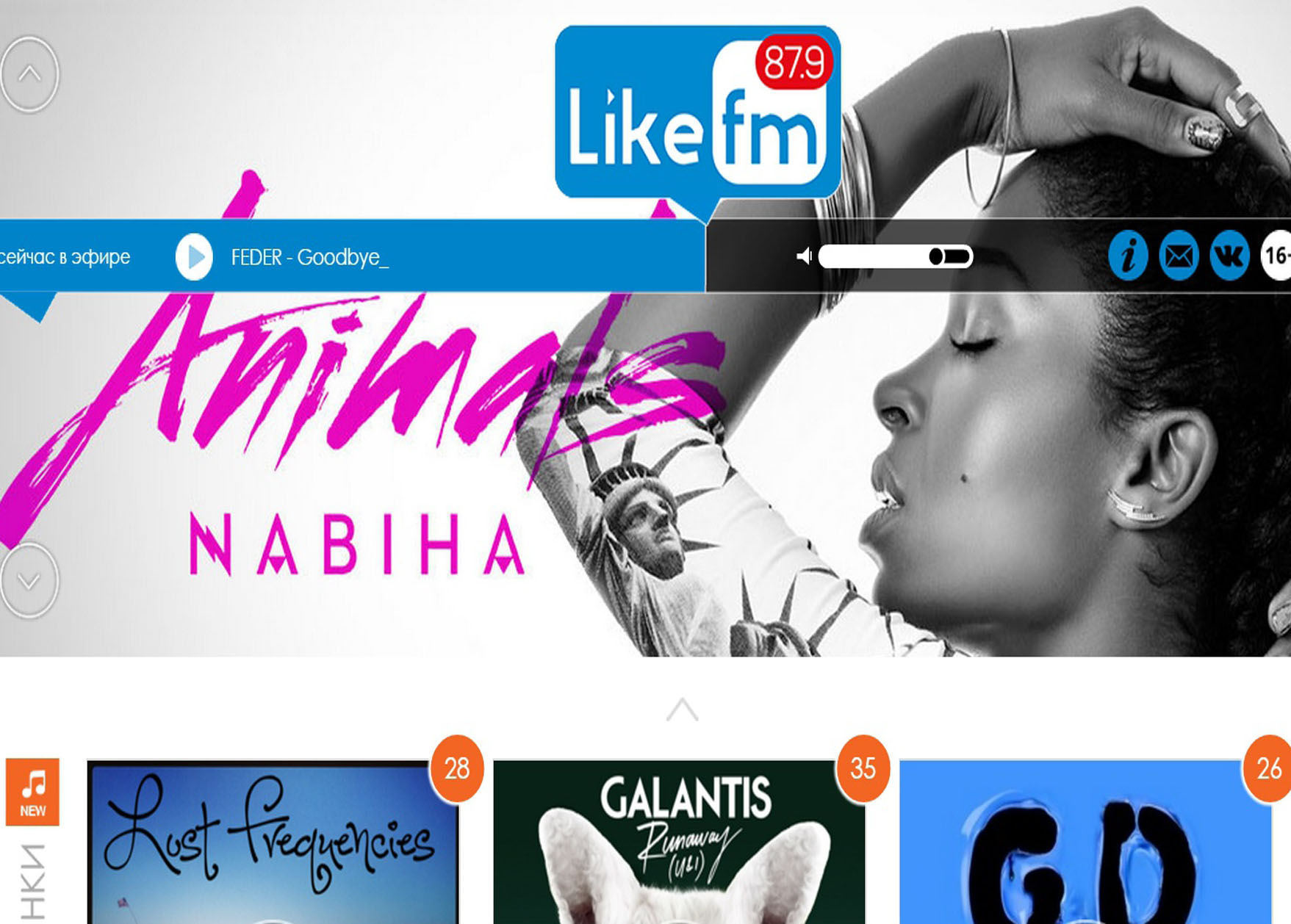 Эфир радиостанции наполнен современными песнями, является качественным и сбалансированным.
