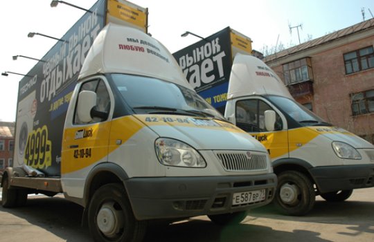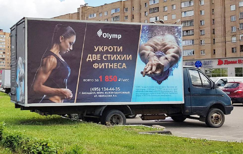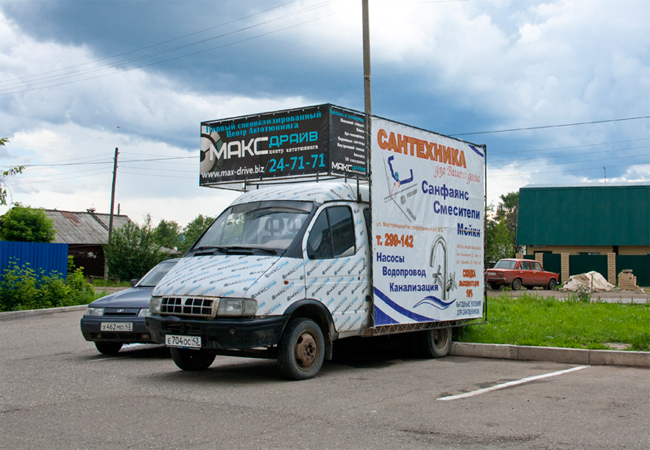 Приводим примеры монтажа рекламы на мобильных билбордах: