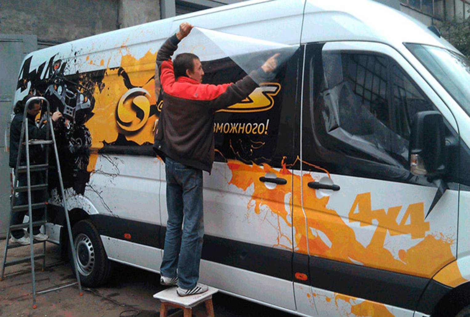 3) процесс брендирования (оклейки) машины рекламой: