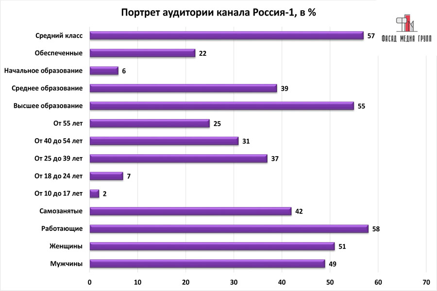 Благодаря качественному, сбалансированному контенту аудитория «России 1» многочисленна и разнообразна.