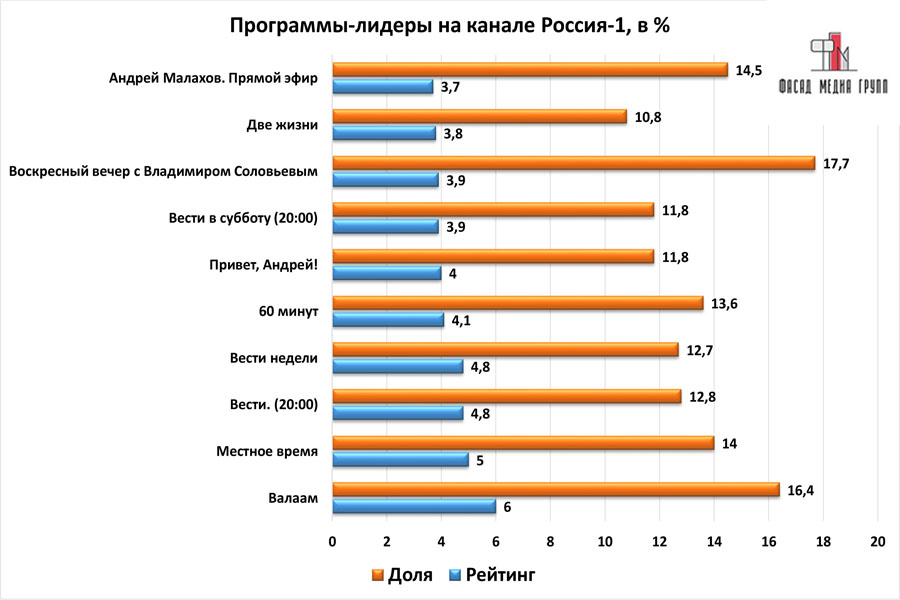 Популярность телеэфира на «Втором канале» приводит к ежегодному увеличению спроса на рекламное время. Для привлечения клиентов из разных регионов России, увеличения процента продаж, повышения имиджа компании и узнаваемости бренда – размещайте рекламу на «России 1». «Второй» – это проверенный и востребованный канал для размещения рекламы на бугульминском ТВ. Для размещения рекламы на телевидении обращайтесь в рекламное агентство «Фасад Медиа Групп». Будем рады сотрудничеству.