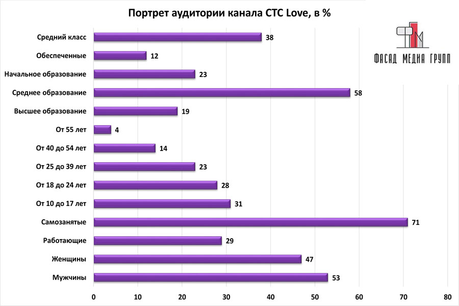 Благодаря качественному, сбалансированному контенту аудитория «СТС love» многочисленна и разнообразна.