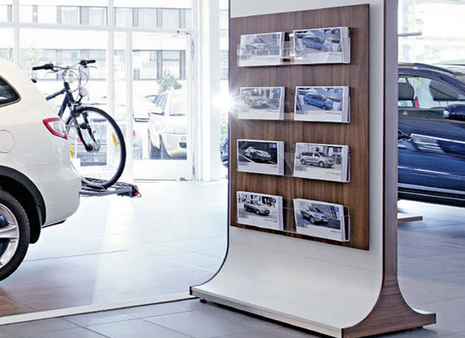 Реклама в автосалонах отличается тем, что рекламные материалы располагаются на уровне глаз потенциального клиента или покупателя. Удачное расположение рекламы приводит к тому, что листовки, буклеты и другие форматы рекламы в автосалонах хорошо видны и обеспечивают 100% читаемость со стороны посетителей.