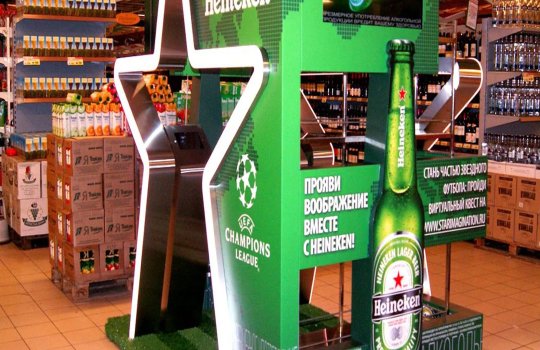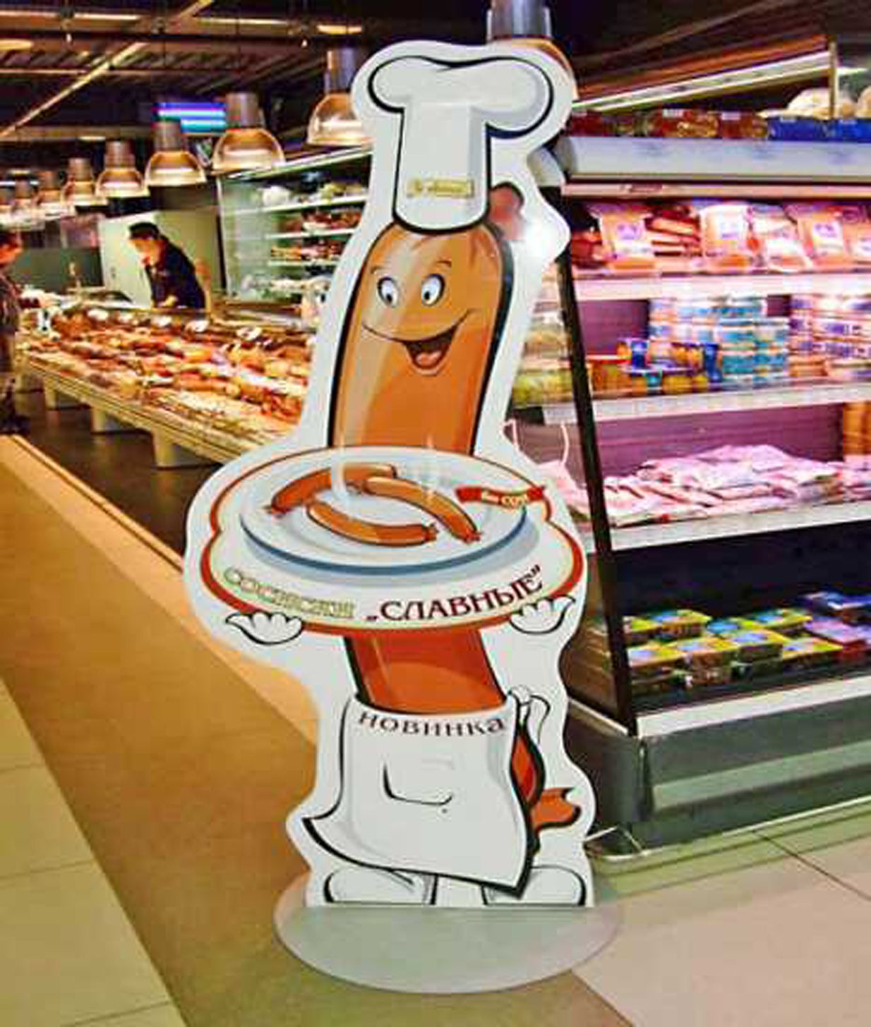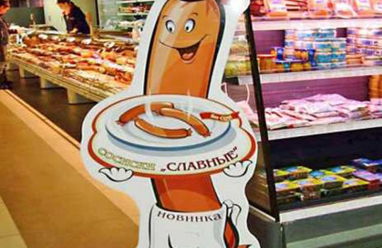 Пример рекламы в напольной конструкции в супермаркетах: