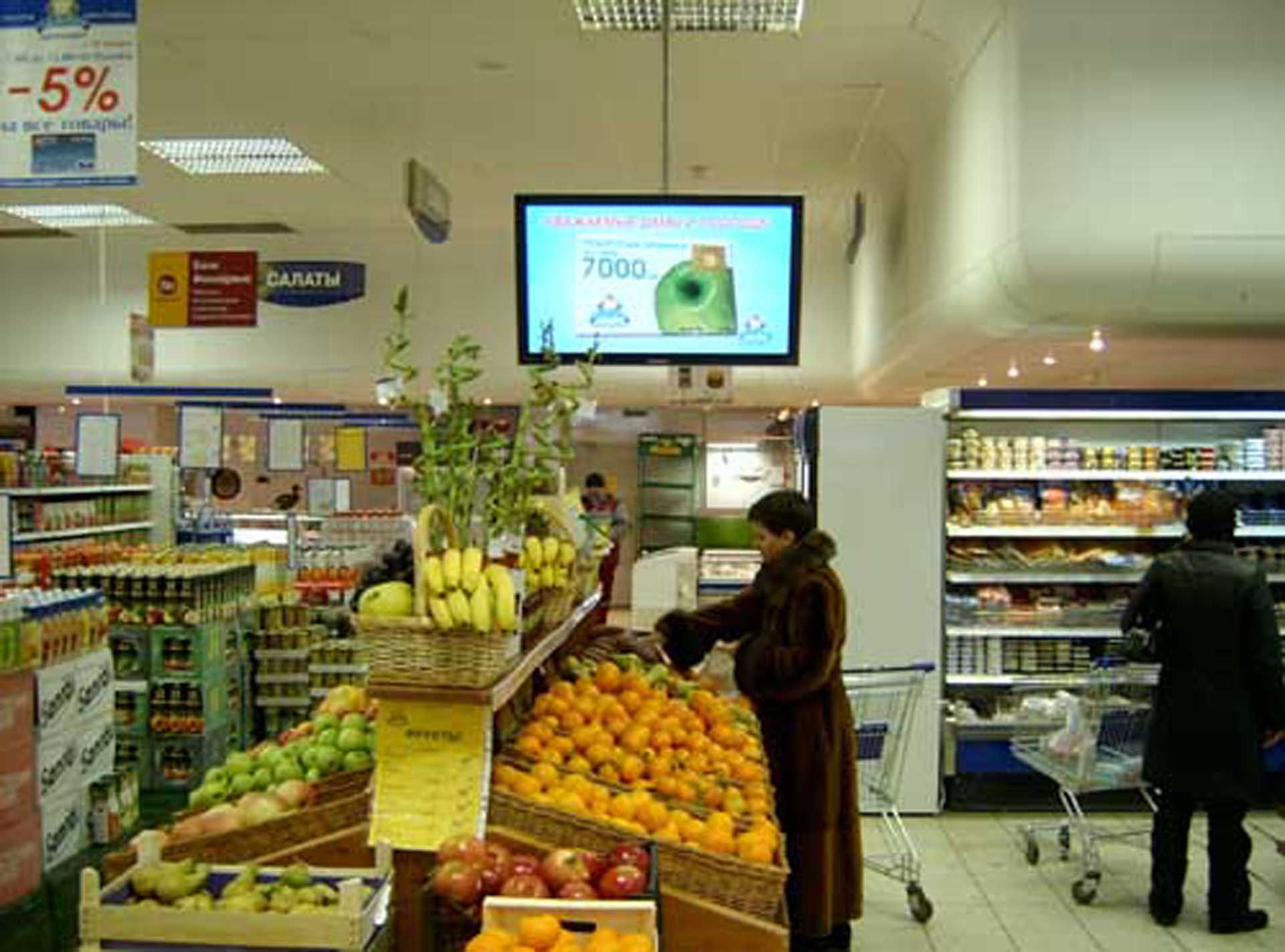 Пример рекламы на мониторе в супермаркете: