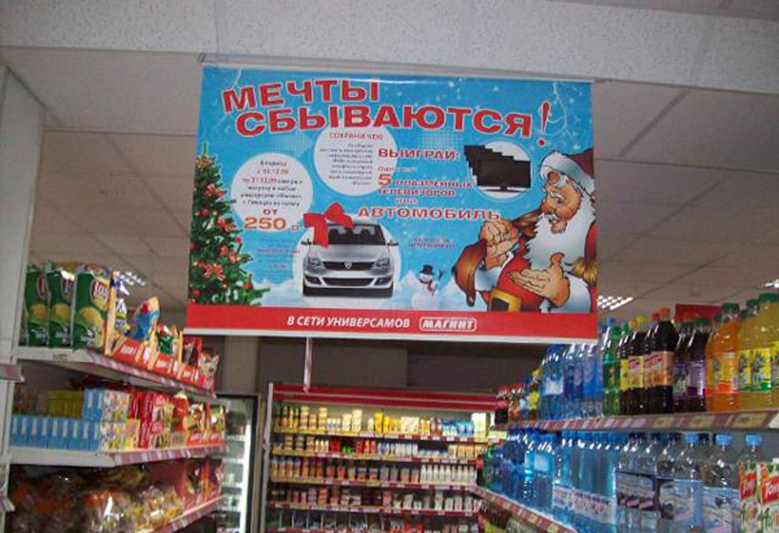 Пример рекламы под сводом в супермаркете: