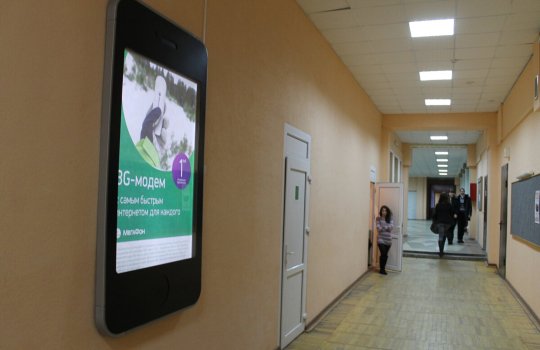 Пример рекламы на мониторе в ВУЗе: